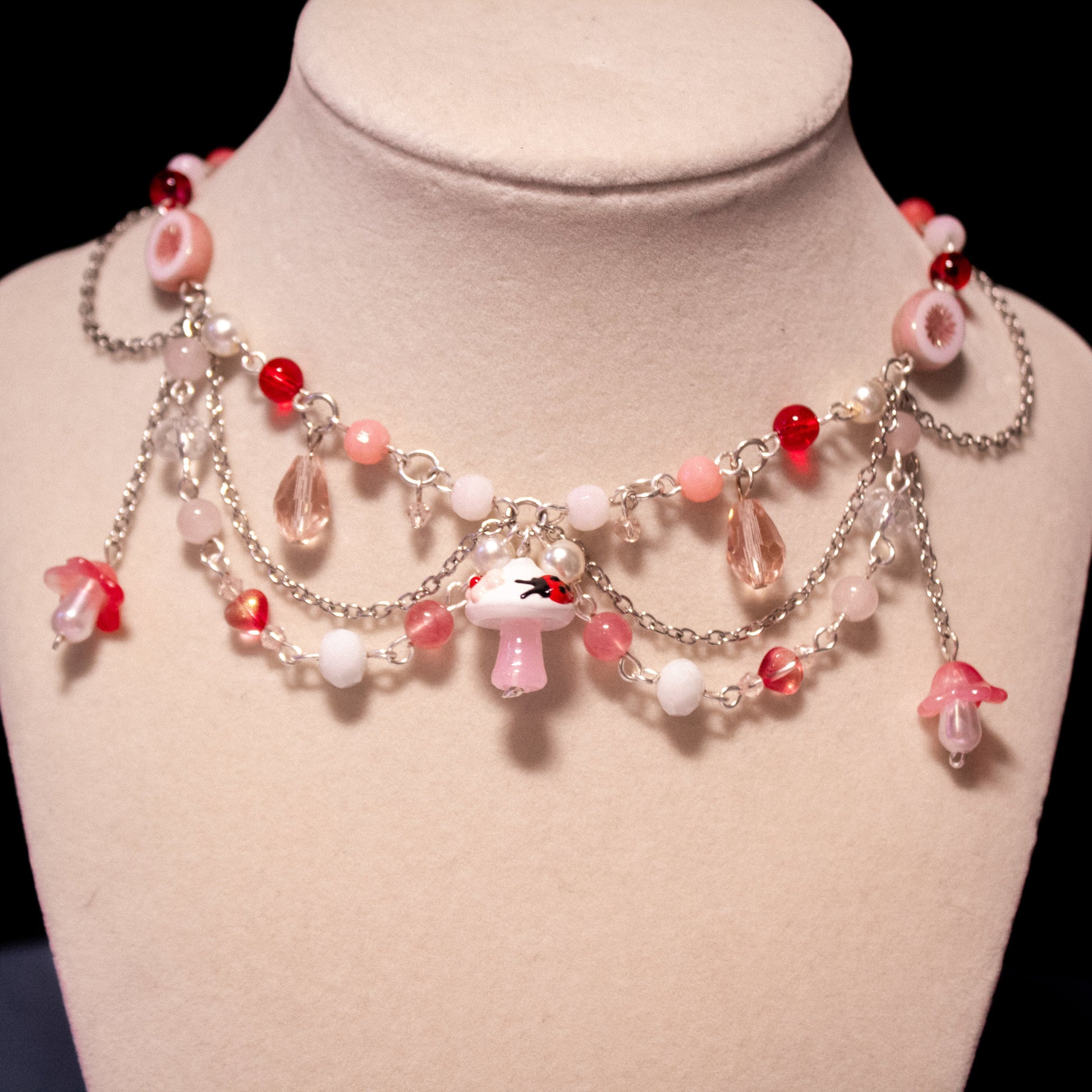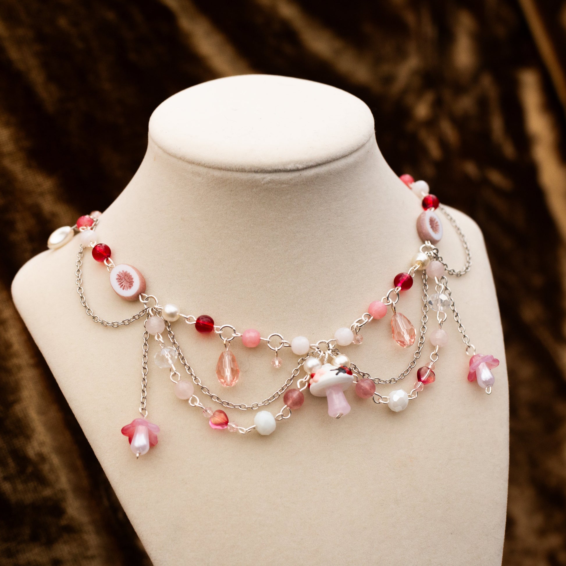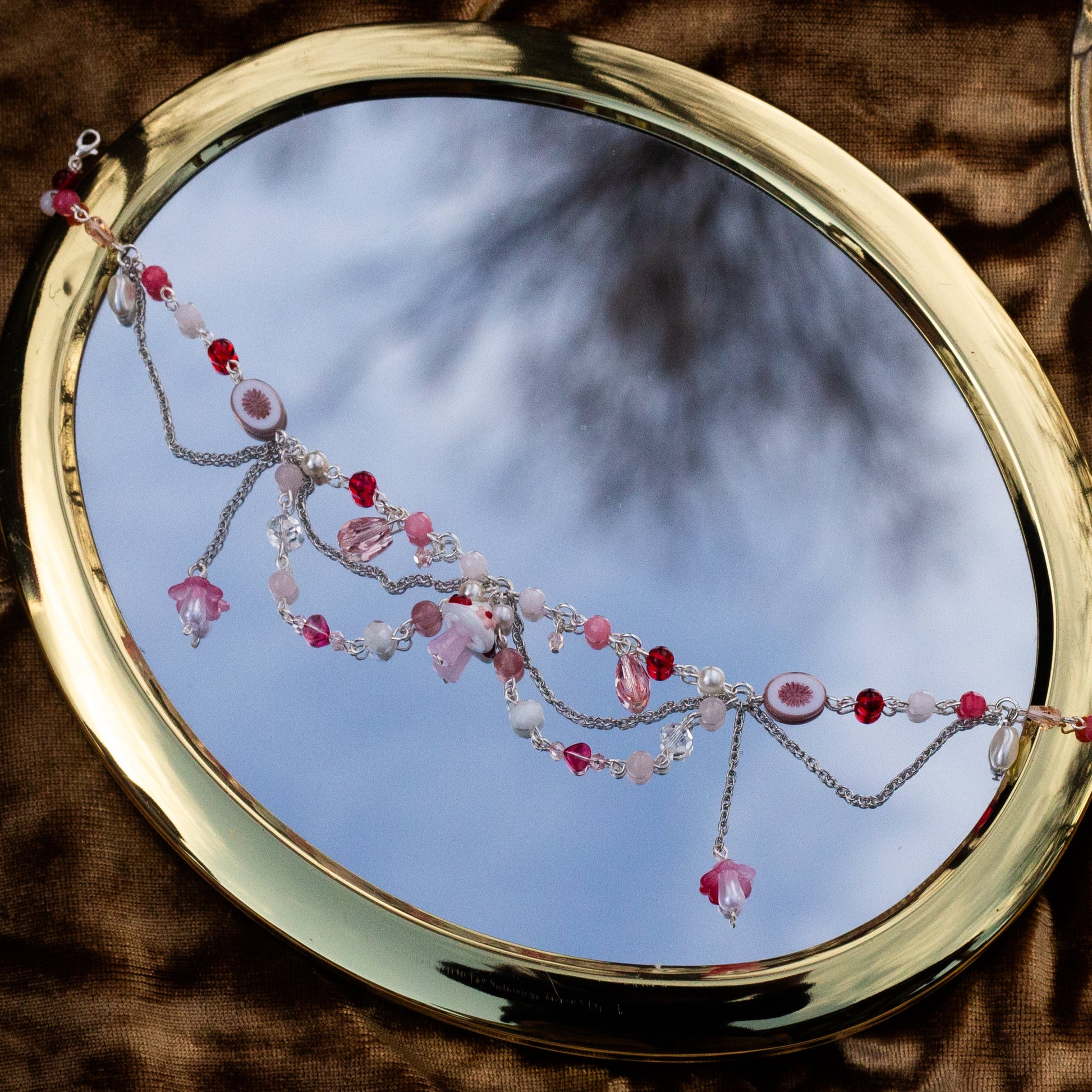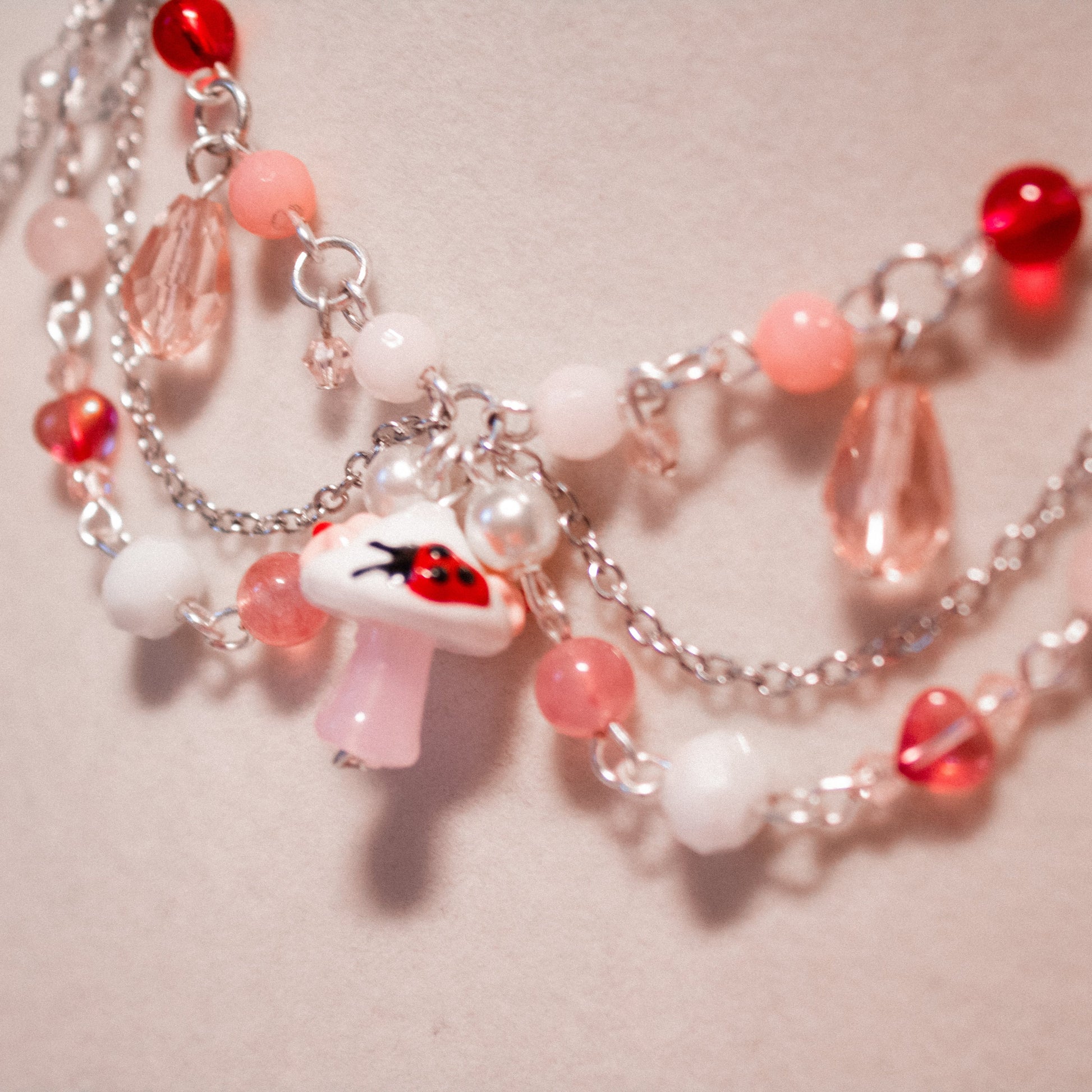 made with; tarnish proof wire, rose quartz, glass pearls, glass beads, czech beads, lampwork beads & 💗