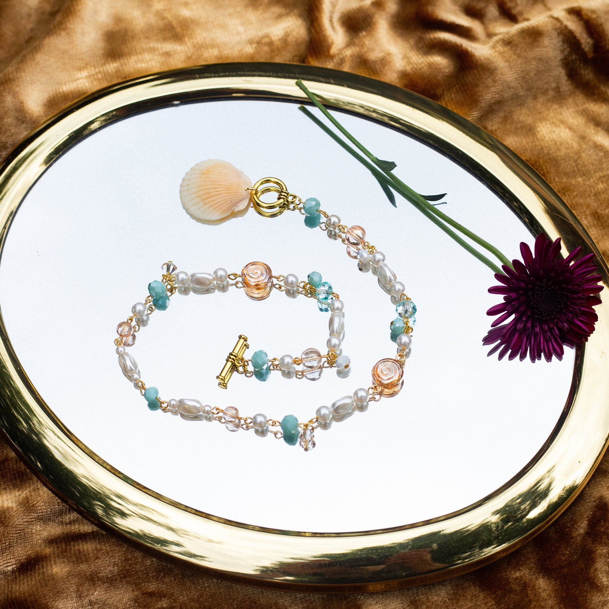 made with; real seashells, tarnish proof wire, glass pearls, glass beads, czech beads & 💗
